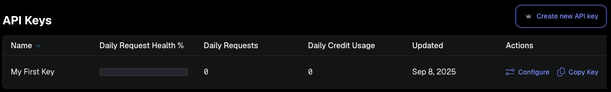 - Developer plan - Allows up to five API keys.